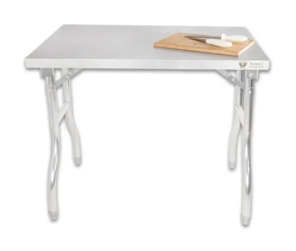 Aceasta masa inox pliabila profesionala este conceputa pentru a optimiza fluxul de lucru in orice unitate de alimentatie publica. Designul pliabil permite montarea si demontarea rapida, fiind ideala pentru spatii dinamice sau activitati mobile, precum food truck-uri si evenimente.