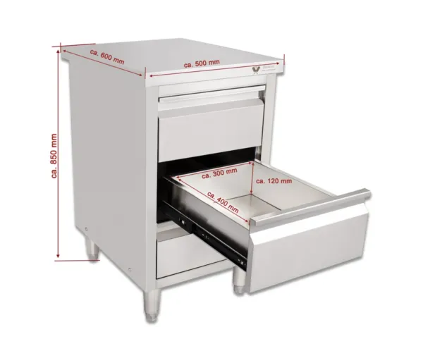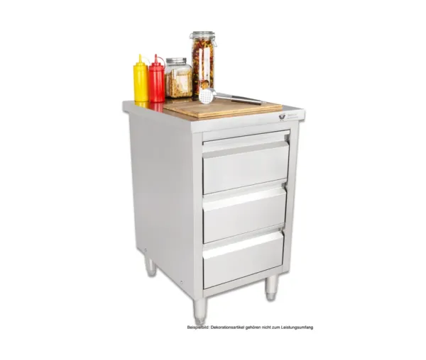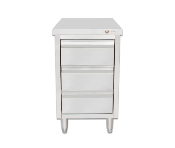 Masa inox tip dulap, 3 sertare, fara rebord, BSS-60, 500x600x850 mm