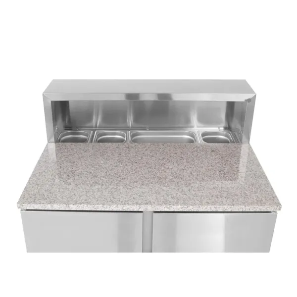Parte din gama premium de masa rece, acest model cu blat de lucru din granit și suprastructură profesională este o alegere ideală pentru unități din domeniul HoReCa care prioritizează igiena, eficiența și prezentarea impecabilă a produselor. De la bucătării de restaurant și fast-food-uri, până la pizzerii, pub-uri și zone de catering, această masă rece se adaptează cu ușurință fluxului operațional intens.