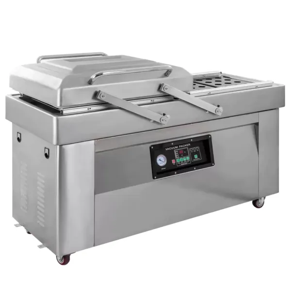 Masina de ambalat in vid 2-camere cu lungime de sigilare de 60 cm este un aparat de vidat profesional, perfect pentru măcelării, restaurante, fabrici de procesare a alimentelor, supermarketuri și laboratoare farmaceutice. Cu două camere de vidare, acest echipament permite sigilarea continuă și rapidă, fiind ideal pentru unități cu volum mare de ambalare.