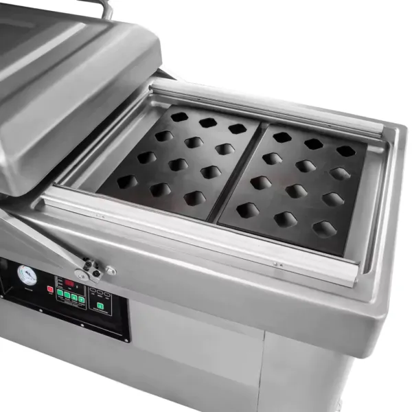 Această masina de vidat profesionala este esențială pentru restaurante, măcelării, fabrici de procesare, supermarketuri și unități farmaceutice. Sistemul cu două camere crește eficiența și optimizează fluxul de lucru, asigurând sigilare de calitate superioară.