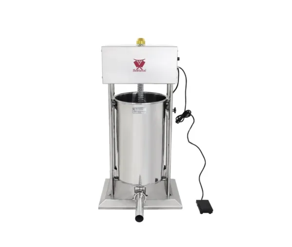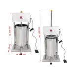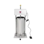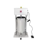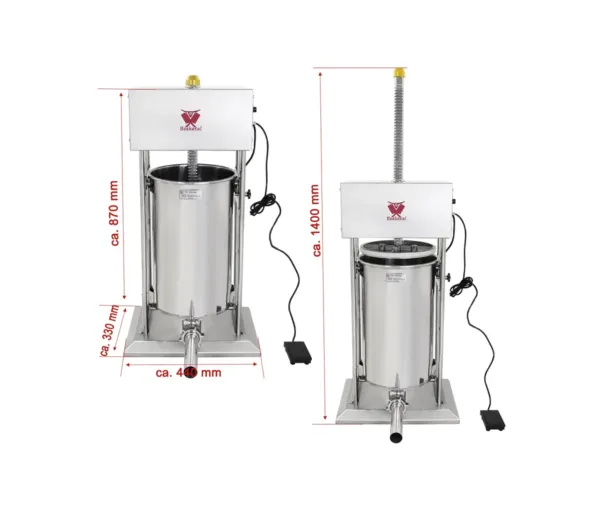 Mașina de umplut cârnați electrică cu o capacitate de 25 litri, fabricată integral din oțel inoxidabil, este un aparat de umplut cârnați electric destinat unităților HoReCa precum restaurante, măcelării, carmangerii și laboratoare de procesare a cărnii, dar poate fi utilizată și în gospodării pentru prepararea cârnaților de casă la standarde profesionale. Datorită motorului electric puternic de 250W și capacității generoase de 25 litri, acest carnatar electric asigură o producție eficientă și rapidă de cârnați, fiind perfect pentru volume mari de producție.
