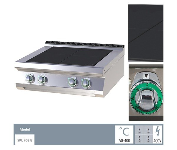 Masina de gatit electrica 4 plite radiante de banc SPL708E – Echipament compact și performant pentru HoReCa