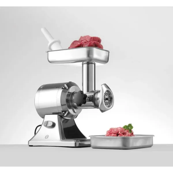 Masina de tocat carne Profi Line 12 este soluția ideală pentru unități de alimentație publică, precum restaurante, cantine, măcelării sau supermarketuri. Acesta face parte dintr-o gamă largă de mașini de tocat carne profesionale, concepută pentru a îmbunătăți eficiența și performanța în procesul de tocare al cărnii. Datorită designului său robust și a materialelor de calitate superioară, această mașină de tocat carne inox profesională oferă o performanță excelentă, având o capacitate de până la 200 kg pe oră.