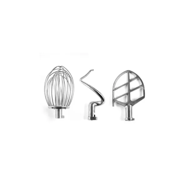 Acest mixer profesional cu bol vine echipat cu un set complet de accesorii: tel, cârlig pentru frământat și spatulă – fiecare piesă fiind adaptată diferitelor nevoi din bucătărie. Datorită performanței ridicate și adaptabilității, mixerul poate fi utilizat cu succes în restaurante, patiserii, brutării, dar și în locații de tip fast-food sau catering.