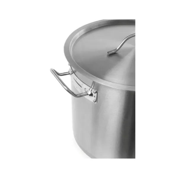Cu un diametru de 280 mm și o capacitate de 17 litri, această oală din inox oferă suficient spațiu pentru gătirea unor cantități mari de preparate, fiind o soluție optimă pentru gătitul în serii mari sau pentru prepararea porțiilor de dimensiuni generoase. Manerele nituite dublu garantează o manipulare sigură, chiar și atunci când oala este plină. În plus, structura sa solidă cu grosime de 4 mm asigură o durabilitate de lungă durată, rezistență la coroziune și performanțe excelente în orice mediu de lucru intensiv.