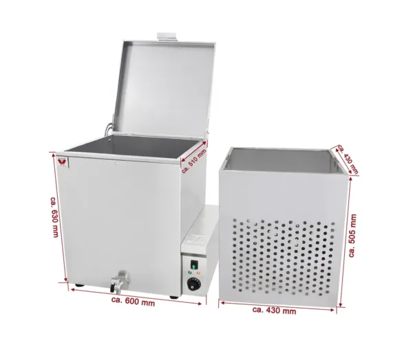 Oparitor pasari inox 120 litri, perete dublu, cos detasabil, 600x510x630 mm