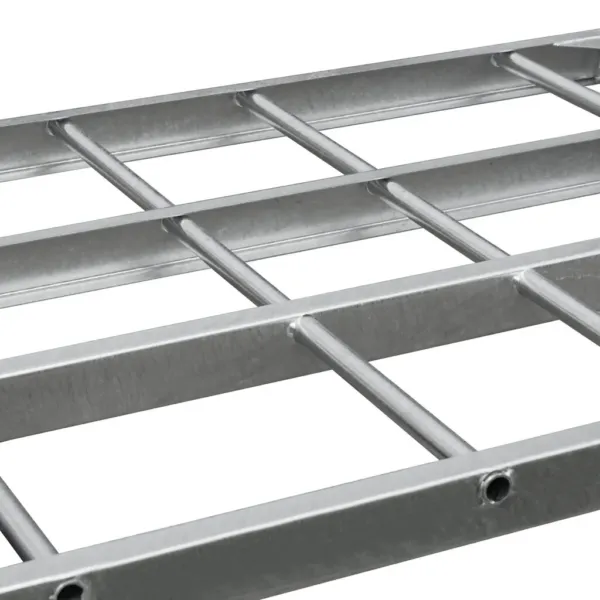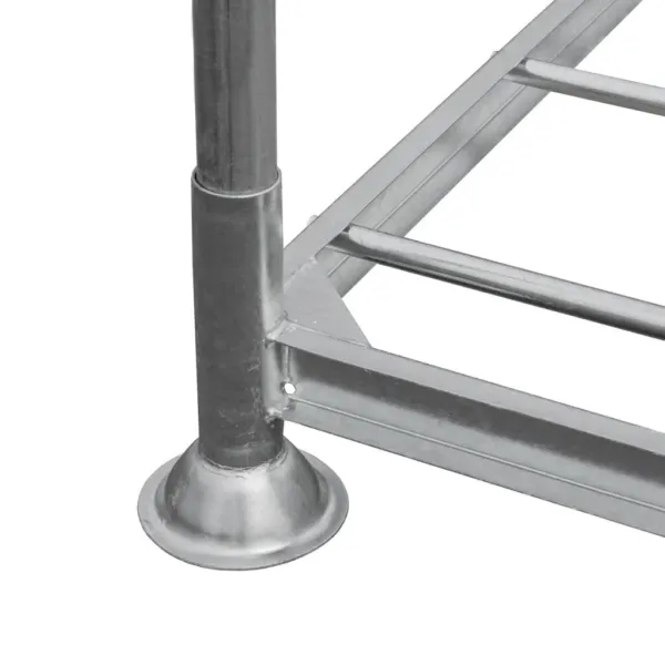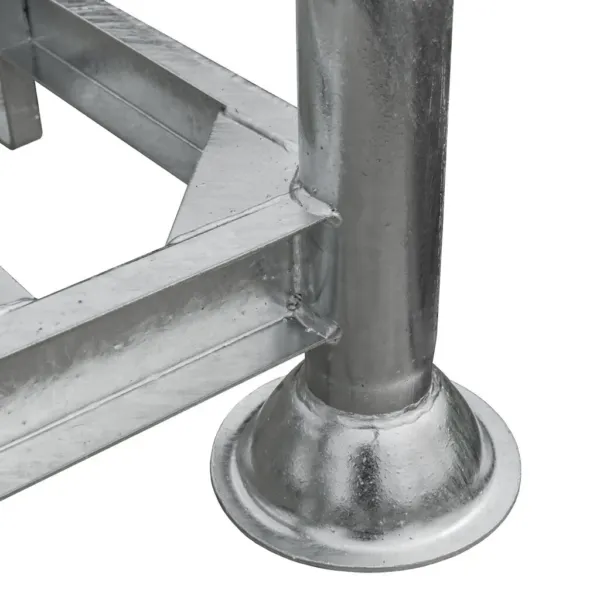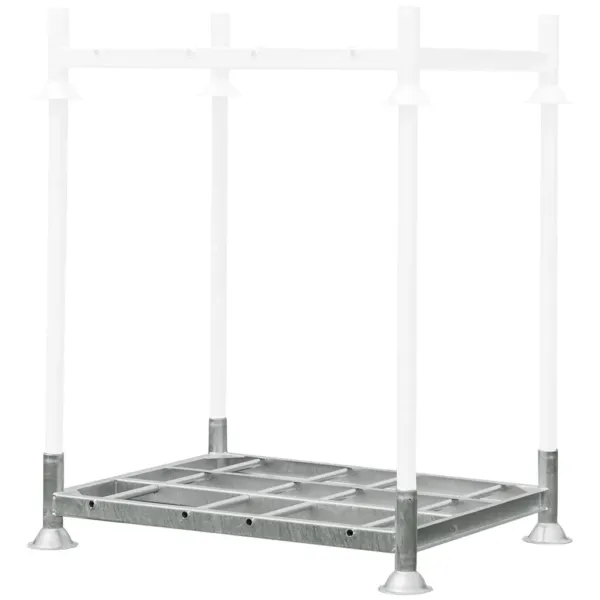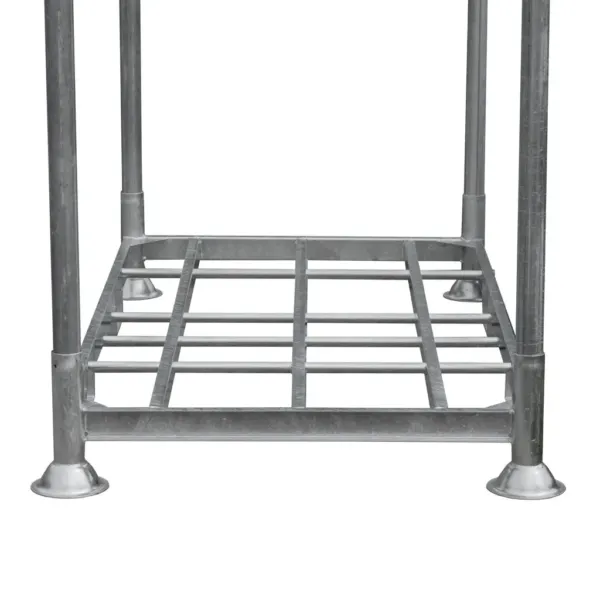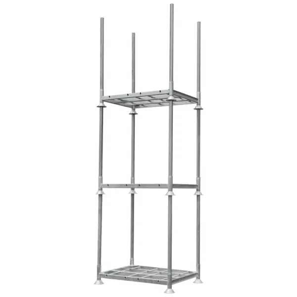 Acest palet pentru stâlpi este fabricat din oțel zincat, protejat împotriva coroziunii și uzurii, fiind ideal pentru utilizare intensivă în depozite sau spații logistice. Poate fi folosit atât ca bază pentru transport, cât și ca parte a unui sistem modular de rafturi verticale. Prin montarea tuburilor suport, paletul se transformă rapid într-un raft mobil, permițând stocarea eficientă a materialelor voluminoase fără a fi nevoie de descărcarea lor.