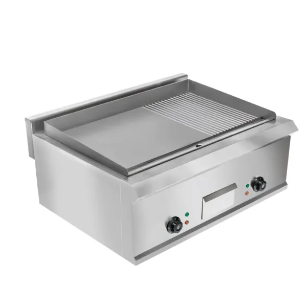 Echipata cu termostate reglabile, aceasta plita electrica profesionala permite setarea temperaturii optime pentru fiecare suprafata de gatire, prevenind arderea alimentelor si garantand preparate perfecte.