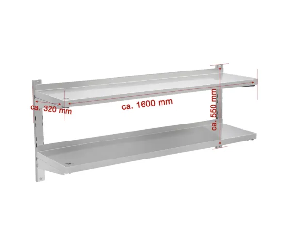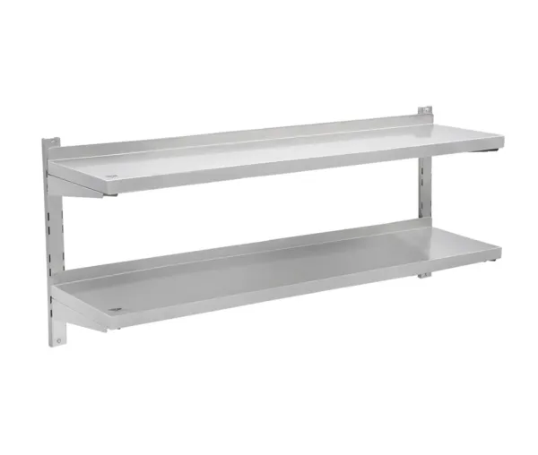 Raft perete inox, 2 polite, 1600×295 mm, reglabila, capacitate 35 kg/polita