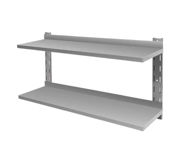 Aceasta polita suspendata inox este prevazuta cu doua niveluri de depozitare, oferind suficient spatiu pentru ustensile, recipiente, ingrediente sau echipamente de mici dimensiuni. Configuratia sa permite organizarea clara a obiectelor utilizate frecvent, reducand timpii de cautare si imbunatatind productivitatea personalului.