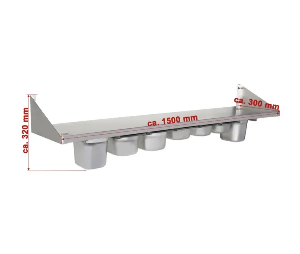 Avantajele raftului de perete 1500x300x320 mm cu suport pentru cuve GN1/6: