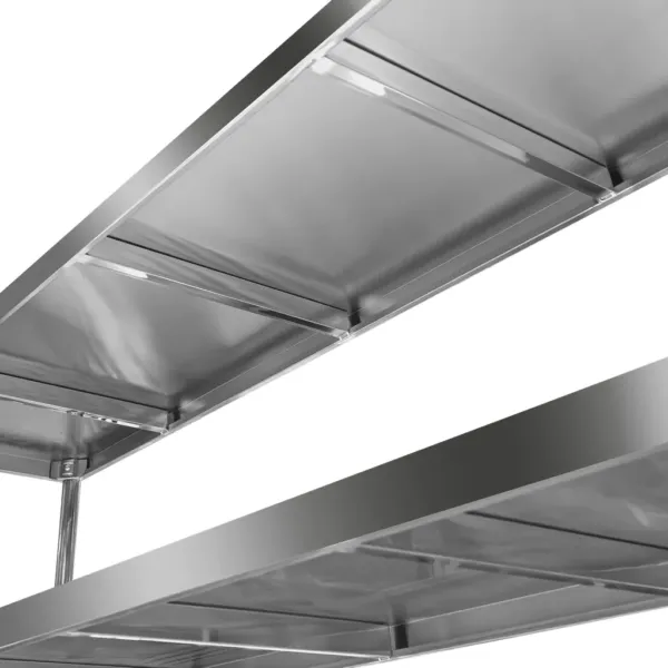 Fabricat integral din otel inoxidabil, acest raft inox bucatarie ofera durabilitate si siguranta in utilizare. Politele sale sunt concepute pentru a asigura o distributie uniforma a greutatii, iar picioarele reglabile permit ajustarea pe suprafete neregulate, oferind o stabilitate excelenta. Suprafata neteda si finisajul estetic contribuie la un aspect profesional, potrivit atat pentru spatiile de lucru, cat si pentru zonele vizibile clientilor.