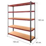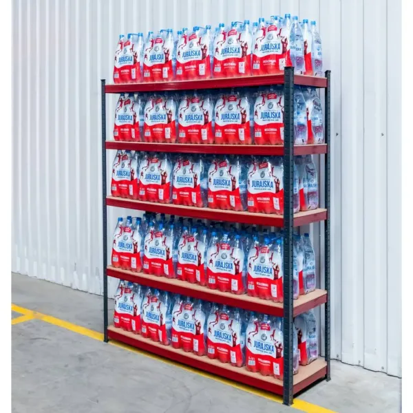 Structura metalica vopsita si politele MDF de 6,8 mm garanteaza durabilitate si stabilitate. Sistemul de montaj pe wcisk asigura asamblarea simpla fara unelte speciale, iar reglarea inaltimii politelor permite organizarea eficienta a bunurilor, adaptata nevoilor unitatii.