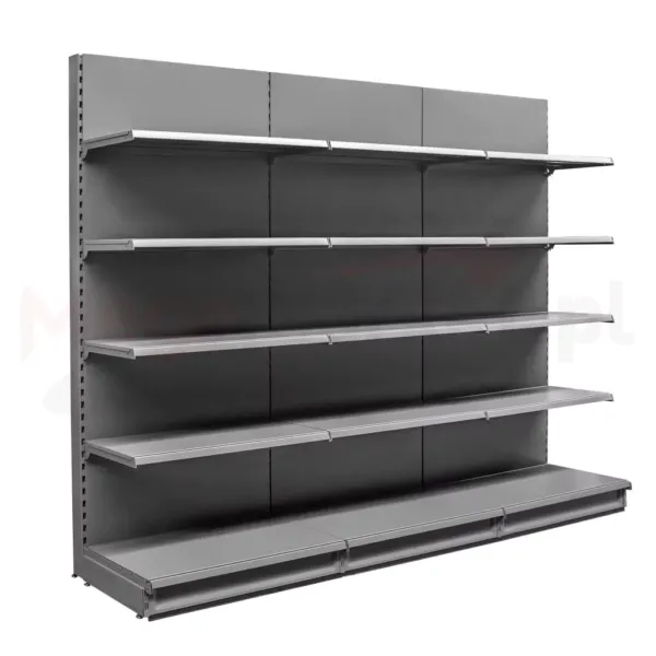 Acest raft metalic profesional este realizat integral din metal vopsit in camp electrostatic, asigurand rezistenta superioara la coroziune si uzura. Structura solida si finisajul grafit (RAL 7016) confera un aspect elegant si modern, perfect integrabil in orice tip de amenajare comerciala. Datorita dimensiunilor sale generoase si constructiei stabile, raftul permite sustinerea unui volum mare de produse, pastrand in acelasi timp o prezentare ordonata si atractiva pentru clienti.