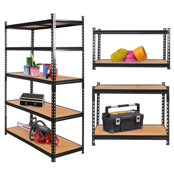 Cu o capacitate de pana la 275 kg pe polita, raftul sustine obiecte grele si voluminoase, asigurand stabilitate si siguranta. Politele reglabile la fiecare 3,8 cm permit adaptarea raftului la dimensiunea bunurilor, oferind flexibilitate maxima. Constructia modulabila permite transformarea raftului in doua unitati mai mici sau chiar in masa de lucru, optimizand spatiul disponibil.