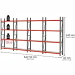 Raft metalic 16 polite, inaltime 200 cm, lungime 642,5 cm, adancime 60 cm, capacitate 450 kg