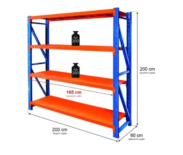 Raft metalic 4 polite, inaltime 200 cm, lungime 200 cm, adancime 60 cm, capacitate 200 kg