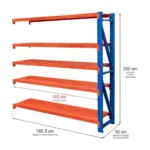 Structura solida din otel lacuit asigura stabilitate si rezistenta pe termen lung, iar fiecare polita suporta pana la 200 kg, oferind un suport sigur pentru produse grele, echipamente si recipiente