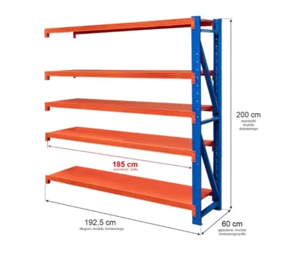 Raft metalic 5 polite, inaltime 200 cm, lungime 192,5 cm, adancime 50 cm, capacitate 200 kg