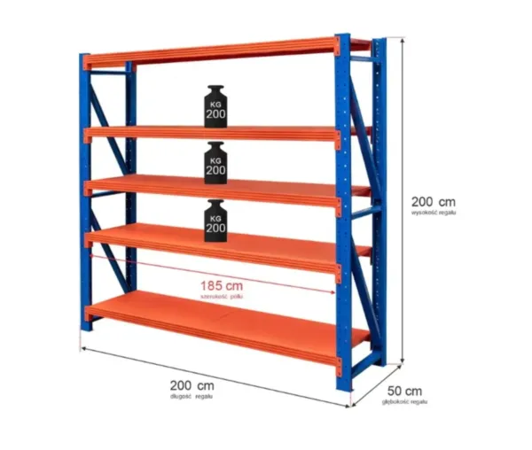 Raft metalic 5 polite, inaltime 200 cm, lungime 200 cm, adancime 50 cm, capacitate 200 kg