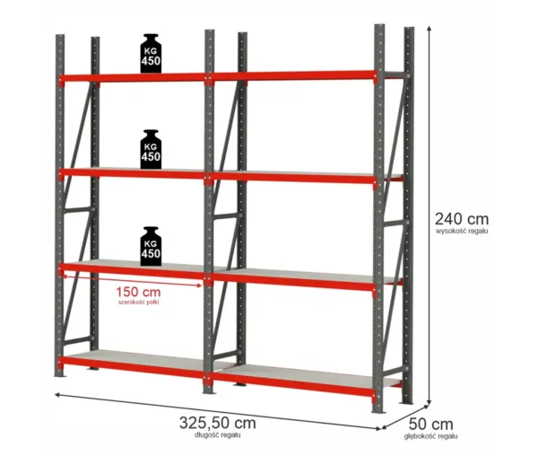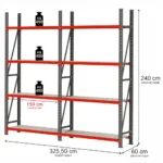 Raft metalic 8 polite, inaltime 240 cm, lungime 325,5 cm, adancime 50 cm, capacitate 450 kg