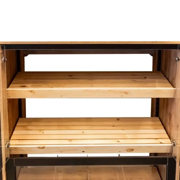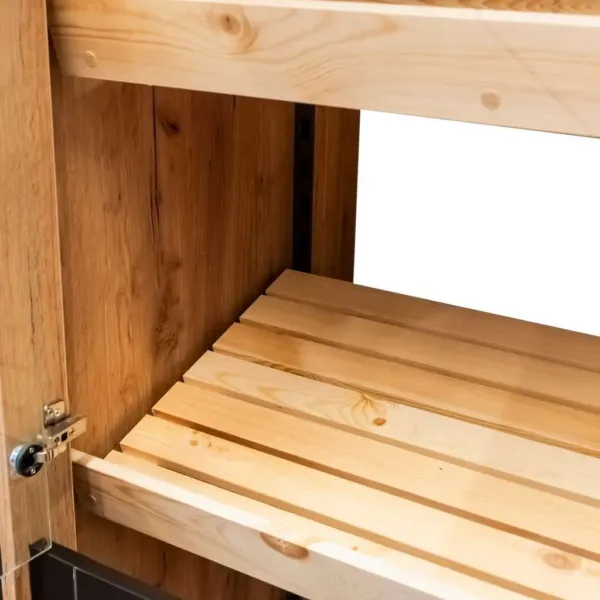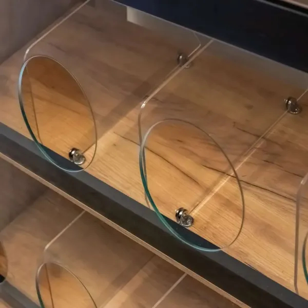 Datorită materialelor durabile și construcției solide, raftul paine compartimentat cu vitrina sticla este ideal pentru utilizarea zilnică intensă în brutării, cofetării, magazine alimentare și cafenele. Designul modern, în combinație cu finisajul stejar kraft negru, se integrează armonios în orice ambient, oferind o prezentare elegantă și profesională care atrage atenția clienților și îmbunătățește experiența de cumpărare.