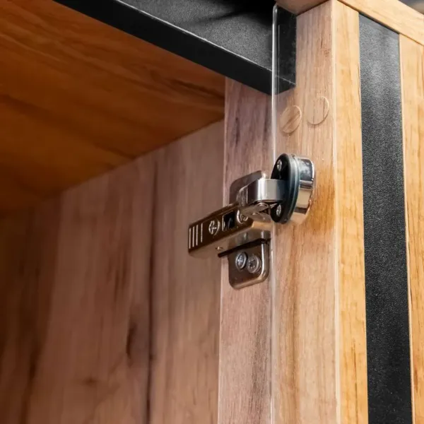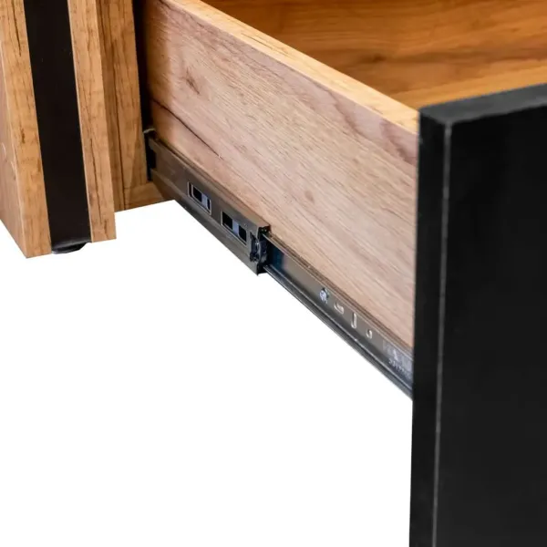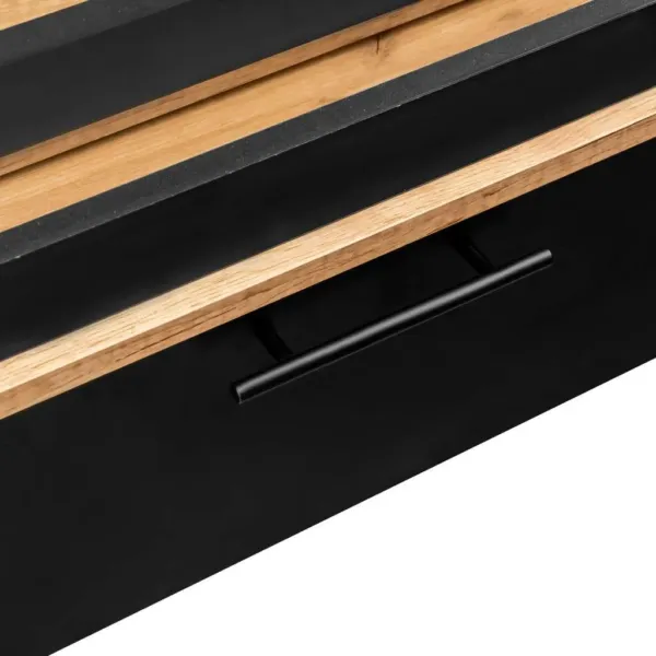 - Material: placaj laminat durabil, finisaj stejar kraft și negru