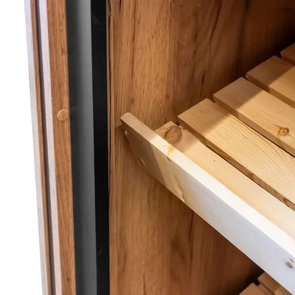 Raftul dispune de cinci polițe spațioase pentru expunerea diferitelor tipuri de pâine, de la chifle și baghete la produse de patiserie. Piesele din lemn sunt prevăzute cu sistem de ventilație, menținând prospețimea produselor mai mult timp. Dolna parte a raftului include o șufladă încăpătoare pe șine cu bile, ideală pentru depozitarea accesoriilor sau a produselor suplimentare. Aspectul modern și combinația de culori facilitează integrarea în diverse amenajări interioare.