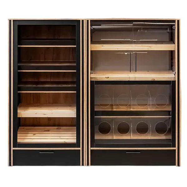 Raftul paine deschis oferă o experiență de cumpărare intuitivă și rapidă. Structura deschisă permite clienților să aleagă produsele fără a fi nevoie de intervenția personalului, economisind timp și optimizând fluxul de vânzare. Finisajul stejar kraft negru adaugă eleganță și profesionalism spațiului, iar construcția robustă din placaj laminat garantează stabilitate și rezistență în timp.