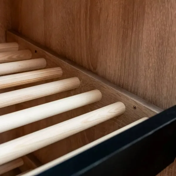 - Polițe cu lamele din lemn pentru ventilație optimă