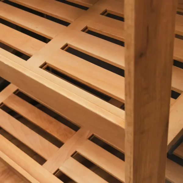 Fabricat din materiale de inalta calitate, acest **raft pentru paine din lemn laminat** asigura o durata lunga de utilizare si rezistenta la uzura zilnica. Suprafata laminata este usor de curatat si intretinut, pastrandu-si aspectul estetic chiar si in conditii de utilizare intensa. Politele reglabile si sistemul de protectie impotriva caderii produselor garanteaza siguranta si confortul in utilizare.