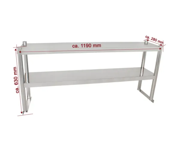 Etajera inox pentru masa de lucru 1190x280x630 mm, 2 polite