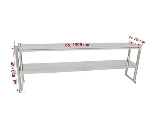 Etajera inox pentru masa de lucru 1995x280x630 mm, 2 polite