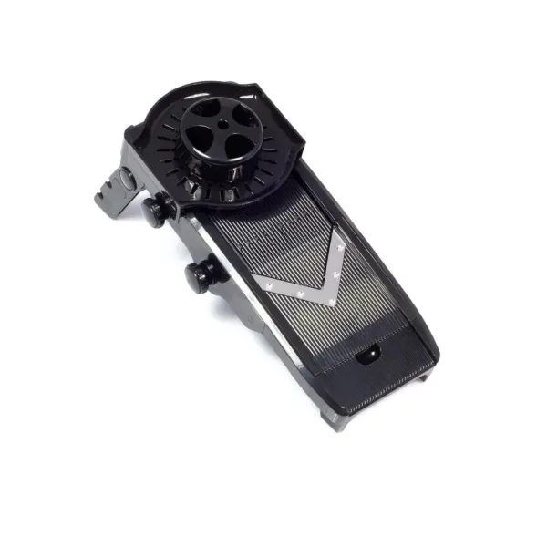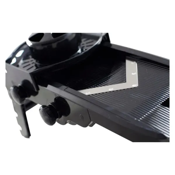 Fiind dotata cu un sistem de lame in forma de V si cu o grosime de taiere reglabila, razatoarea mandolina multifunctionala raspunde nevoilor specifice din orice bucatarie profesionala. Flexibilitatea in reglaj permite obtinerea unor rezultate precise pentru diferite preparate: de la felii fine pentru garnituri, pana la taieturi groase pentru cartofi french sau legume julienne. Designul stabil si suportul pliabil contribuie la siguranta si confort in utilizare.