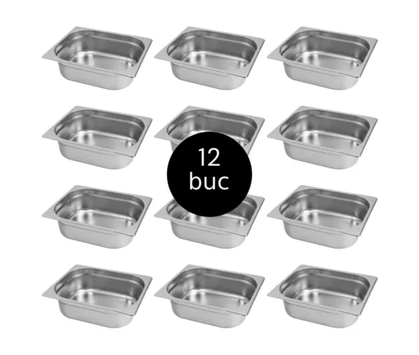 Gama de Vaschete Gastronorm Inox este proiectata pentru a raspunde cerintelor ridicate din domeniul HoReCa, unde organizarea, igiena si rezistenta echipamentelor sunt esentiale. Aceste recipiente standardizate sunt utilizate zilnic in restaurante, fast-food-uri, pizzerii, cantine, unitati de catering sau magazine alimentare pentru depozitarea, pregatirea si prezentarea alimentelor. Modelul recipient GN 1/2 inox cu dimensiunile 32,5×26,5×10 cm, disponibil in set de 12 bucati, reprezinta o solutie practica pentru gestionarea eficienta a ingredientelor si preparatelor in bucatariile profesionale.