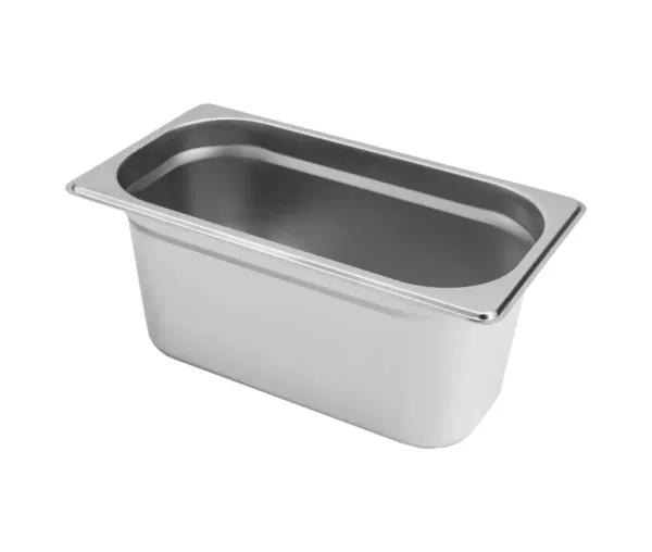 Fabricat din otel inoxidabil de inalta calitate, recipientul GN 1/3 ofera rezistenta la zgarieturi, socuri mecanice si temperaturi extreme. Materialul este biologic neutru, asigurand siguranta alimentelor si pastrarea gustului original. Designul cu margini rotunjite faciliteaza curatarea, mentinand igiena maxima in bucatarii profesionale.