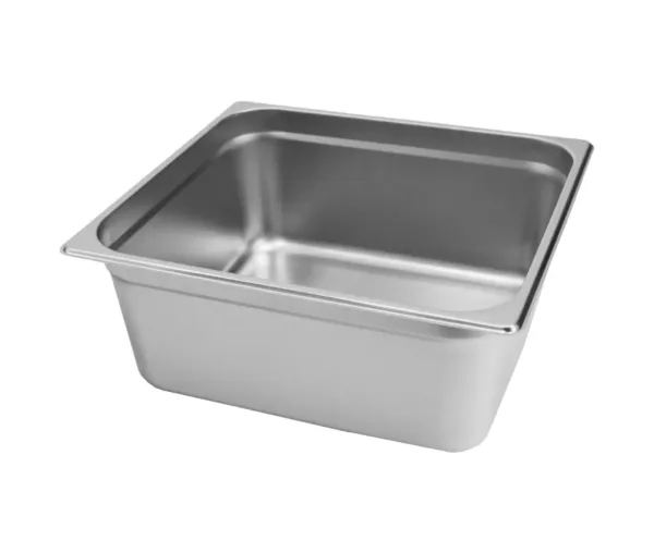 Recipientul inox GN 2/3, 35,3×32,5×15 cm este fabricat din otel inoxidabil profesional, recunoscut pentru durabilitatea si rezistenta sa la zgarieturi sau socuri mecanice. Suprafata neteda si marginile rotunjite permit curatarea rapida si usoara, prevenind aderenta resturilor alimentare si mentinand igiena in bucatarie. Constructia robusta este compatibila cu temperaturi ridicate sau scazute, fiind potrivita pentru gatire, pastrare in frigidere sau prezentare pe linii de servire.