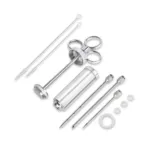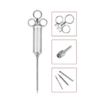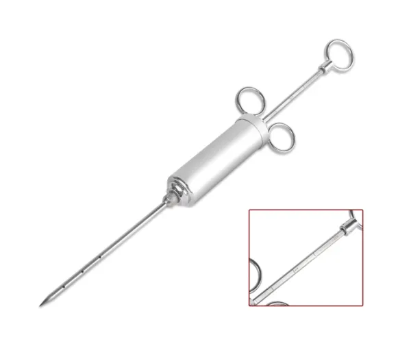 Realizata din PVC rezistent si echipata cu ace din inox rezistent la coroziune, seringa este conceputa pentru utilizare repetata in medii profesionale. Materialele de calitate asigura igiena ridicata, durabilitate si siguranta in contactul cu alimentele, fiind usor de curatat si intretinut.