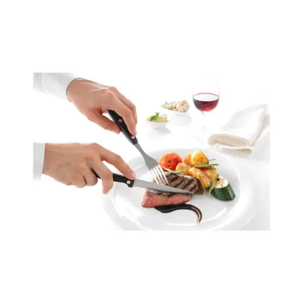 Parte din colectia dedicata unitatilor profesionale de alimentatie publica, acest set de cutite pentru friptura a fost creat special pentru restaurante, bistrouri, food trucks si alte spatii horeca care prioritizeaza eficienta, igiena si aspectul profesional al servirii. Solutia ideala pentru dotarea meselor cu instrumente rezistente, sigure si usor de manevrat, chiar si in fluxuri intense de lucru.