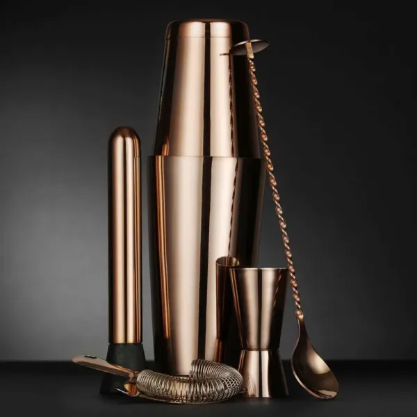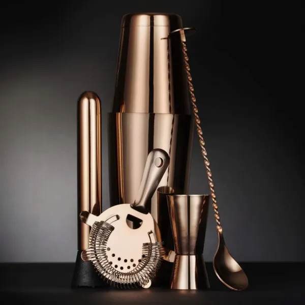 Parte din gama premium de Accesorii bar, acest set barkit cu 5 accesorii din inox și cupru este creat special pentru barmanii care doresc precizie, eficiență și un plus de stil în servirea băuturilor. Gândit atât pentru profesioniști, cât și pentru pasionații de mixologie, acest set oferă toate instrumentele necesare pentru prepararea cocktailurilor într-o manieră elegantă și funcțională.