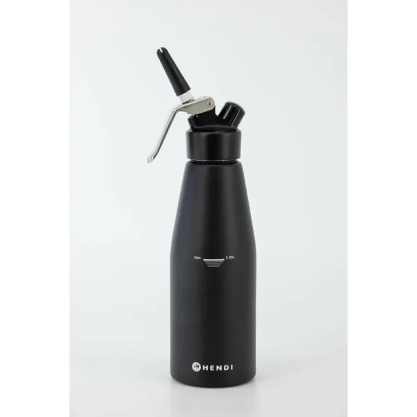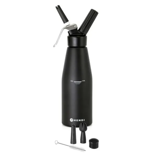 Construit din aluminiu acoperit cu un strat elegant de negru mat, acest sifon frișcă inox aduce un plus de durabilitate și stil în spațiile de lucru profesionale. Dimensiunea generoasă de 0,95 litri permite porționarea eficientă a frișcăi, ideală pentru decorare, umplere și servire. Accesoriile incluse – 3 duze din polipropilenă și o perie de curățare – facilitează întreținerea și utilizarea zilnică.