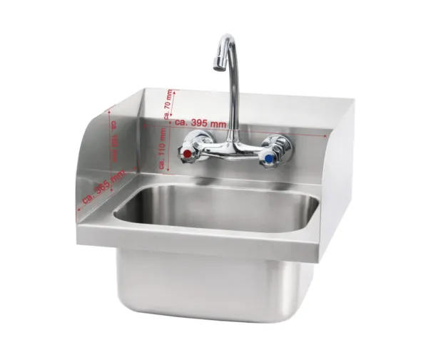 Spalator inox de maini cu robinet 40x40x46 cm, cu spatar 3 laturi, montaj perete