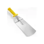Fabricata integral din inox, spatula garanteaza rezistenta la uzura si curatare usoara, esentiala in medii unde standardele de igiena sunt prioritare. Suprafata neteda previne acumularea resturilor alimentare, iar forma simpla si ergonomica o face usor de integrat in orice flux de lucru profesional.
