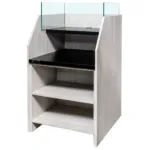 Realizat din placa de mobilier laminata rezistenta, acest stand asigura stabilitate si durabilitate in conditii de utilizare intensiva. Finisajul ulm liberty ofera un aspect modern si cald, potrivit pentru concepte actuale de amenajare in retail si HoReCa.