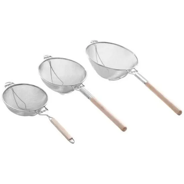 Datorita plasei duble, acest strecurator inox permite o separare foarte precisa a particulelor solide din lichide sau compozitii fine, contribuind astfel la obtinerea unor preparate de inalta calitate. Manerul ergonomic din lemn ofera confort in utilizare si un suport solid pentru manipulare sigura. Materialul din otel inoxidabil placat cu staniu garanteaza rezistenta in timp, usurinta in curatare si siguranta igienica, esentiala in orice bucatarie profesionala.
