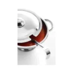 Aceasta oala profesionala inox cu forma rotunda, finisaj satinat si capac dedicat asigura atat pastrarea temperaturii optime a preparatelor, cat si un aspect impecabil la prezentare. Lingura de servire inclusa este perfect adaptata dimensiunii vasului, permitand portionarea rapida si igienica a supelor, sosurilor sau a altor preparate lichide.