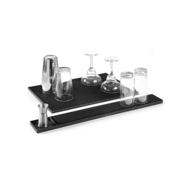 Realizat din cauciuc durabil și flexibil, acest suport oferă o protecție excelentă împotriva umezelii și a șocurilor mecanice. Datorită dimensiunilor de 300x150x(H)10 mm, se integrează perfect în orice spațiu de lucru – de la baruri de hotel, food trucks, până la restaurante și pub-uri. Suprafața texturată menține obiectele la locul lor, chiar și în condiții de lucru umede.