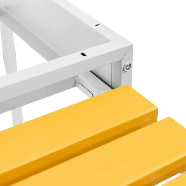 Gama de dulapuri metalice pentru vestiar este completata de accesorii care cresc functionalitatea si confortul spatiilor profesionale. Un suport cu banca pentru dulap extensibila reprezinta o alegere ideala pentru unitati unde optimizarea spatiului si rezistenta sunt prioritare. Acesta imbina o structura metalica solida cu un sezut ergonomic realizat din compozit WPC, oferind atat stabilitate, cat si confort in utilizare zilnica.