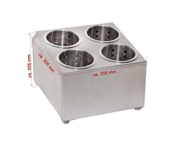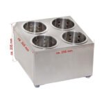Îmbunătățește eficiența și organizarea spațiului tău de lucru! Alege Suportul pentru 4 coșuri tacâmuri și oferă personalului tău acces rapid și ușor la tacâmuri. Explorează oferta completă de echipamente profesionale și comandă acum acest produs esențial pentru afacerea ta!
